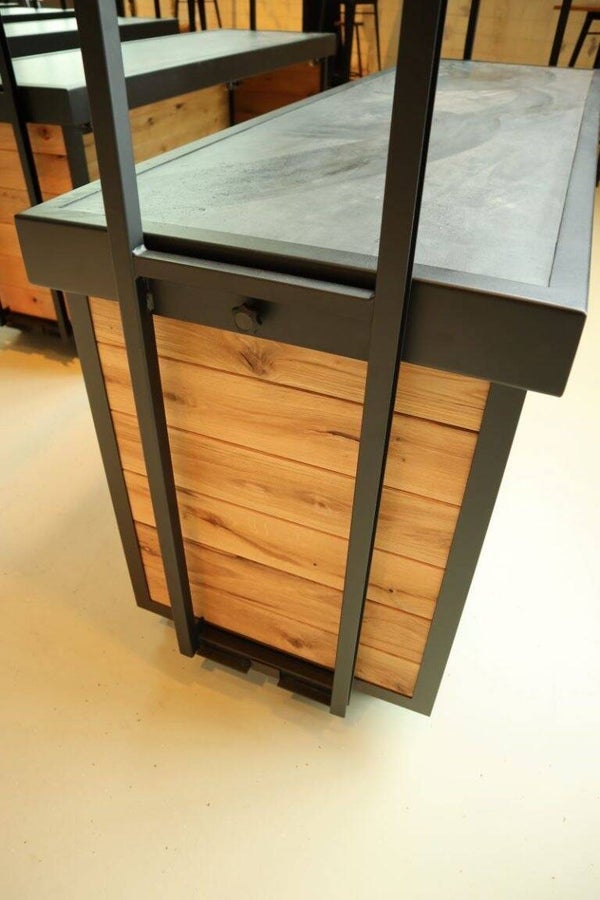 Wil je drankjes of gerechten gekoeld bewaren in je buffetmeubel? Dan maken we een uitsparing voor horecakoeling in het frame. Je sluit hem aan op de inclusieve verdeeldoos met 4 aansluitpunten. Dat scheelt veel tijd en horecameters. Let wel op met hoge plinten, omdat je meubel verlaagd wordt om ruimte te bieden aan de horecakoeling. Zonder deze optie heb je een open ruimte met bodemplaat onder je werkblad.