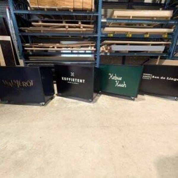 Fabriqué en acier noir mat et Dibond, ce meuble est à la fois élégant et solide. Il résiste aux chocs, à l’humidité et aux rayons UV. Les panneaux sont disponibles en 90 couleurs RAL. Vous voulez votre logo dessus ? Nous le plaçons en autocollant vinyle personnalisé sur le panneau avant, dans la couleur de votre choix parmi les 90 proposées – pour une meilleure visibilité de votre marque.