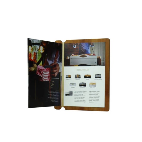 Bambus-Menühalter zum Befestigen der gesamten Speisekarte mit einem Gummiband.